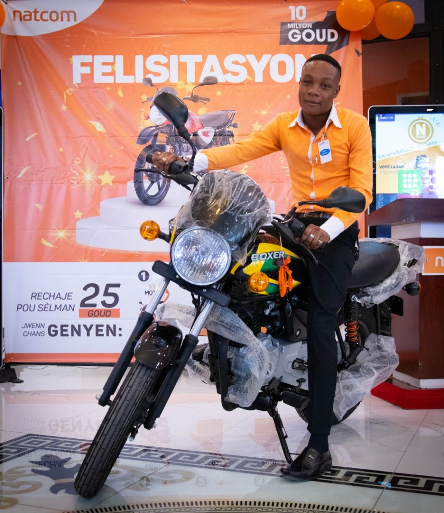 Julienne Moïse, Saint-Vil Alix, Ysaïe Grantier, Samson Jeanrilus et Jean Yves Lavertus sont les derniers gagnants de ladite promotion. En présence des journalistes, dans une atmosphère solennelle, des clients et des cadres de la compagnie, ils ont reçu chacun sa motocyclette flambant neuve. Dans leurs propos de circonstance, ils ont tous salué le travail de la Natcom au profit de la population haïtienne et encouragé les concitoyens à rester fidèles à la Natcom.