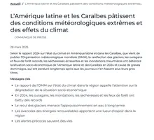 L’Amérique latine et les Caraïbes pâtissent des conditions météorologiques extrêmes et des effets du climat